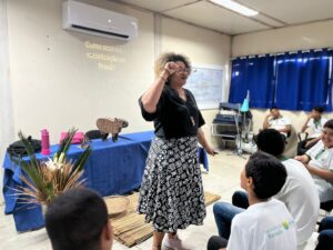 Minha atuação transita entre a articulação política – pensando estratégias para fortalecer nosso povo – e o trabalho pessoal, com formações, principalmente em educação antirracista.