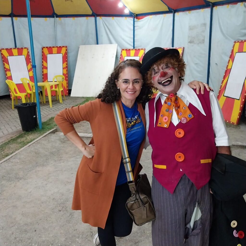 Helga Guedes não só viu essa mágica acontecer, como também cresceu nela. Filha de Teófanes Silveira – Patrimônio Vivo de Alagoas e Mestre das Artes Brasileiras –, ela foi criada entre os trailers e o picadeiro da companhia familiar “A Turma do Biribinha”. O nome, que já carrega 38 anos de história, é o mesmo do palhaço lúdico vivido por seu pai.