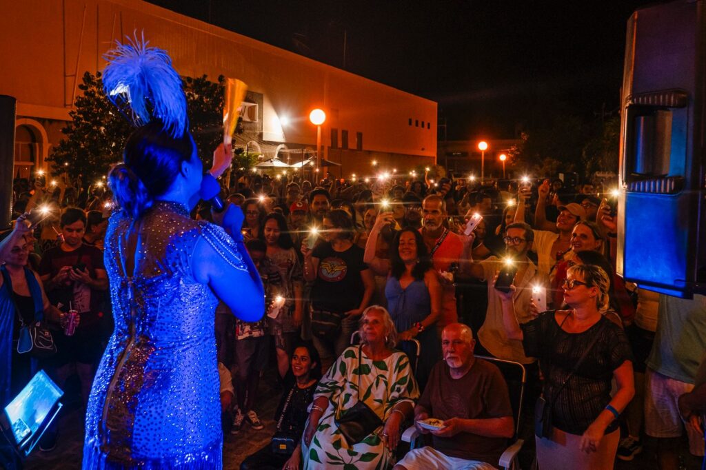 Ivana Iza celebra 30 anos de carreira com festa aberta ao público em frente ao Theatro Homerinho