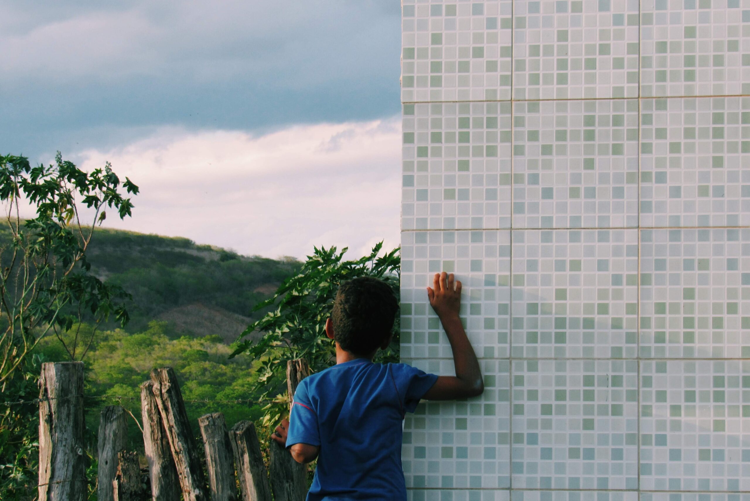 Sim. Essa é uma imagem que ficou na minha memória e que sempre relembro com carinho. Um menino olhando para a natureza como se fosse uma janela. Criei uma narrativa intitulada “A procura”. Nesse momento a criança estava procurando uma bola perdida que voou para longe e já estava tão longe que nem mais a bola ela procurava, já procurava outra coisa, já estava em outro momento, em outra procura.